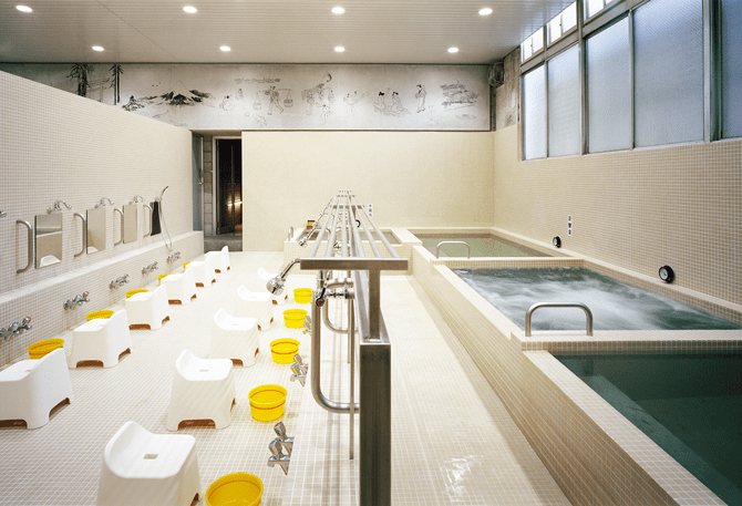 Located on several high-level floors of a multi-story building near Ikebukuro station, Sauna Karumaru cultivates an oasis-like environment in an otherwise exciting and chaotic part of Tokyo.