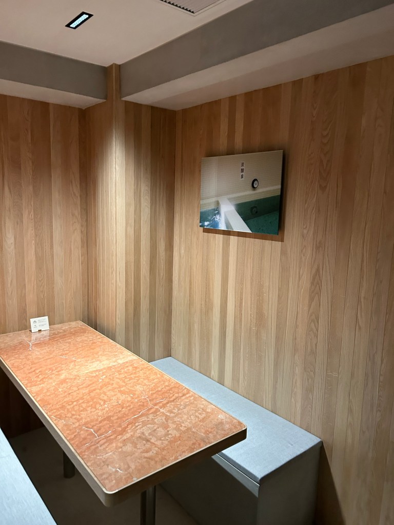 As you ascend up Sauna Karumaru, the amount of greenery gradually increases, a subtle detail I appreciated. From the lack of plants in the lobby, you start to see some loose birch branches in the resting areas, then towards the top floor, you can spot a small bonsai tree, leading to the outdoor rooftop with full trees at the center of the roof. The gradual addition of plants subtly lures you into relaxing and unwinding as you retreat from the city and into the depths of the facility.