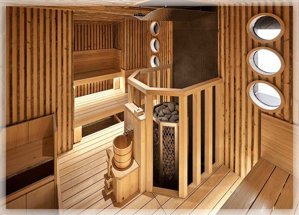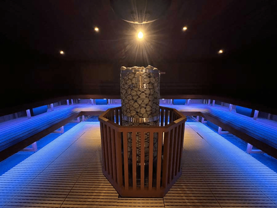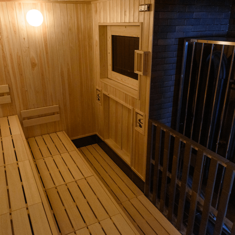 My personal favorite, this sauna lives up to its name and uses an actual wood-fired stove as its heat source. Only groups of five are allowed in at a time, so you enter with a sense of anticipation and excitement. With a temperature around 80 degrees (around 176 Farenheit), the sauna allows you to slowly build up to a steady and comfortable sweat. Used in conjunction with the nearby cold plunge, this sauna is an absolute treat.
